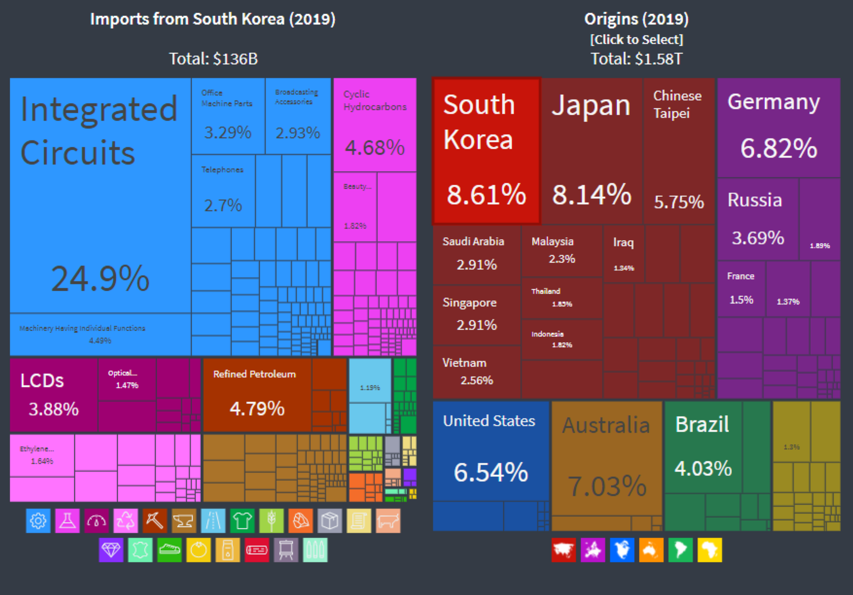 그런데 중국이 세계의 공장이다, 미국에 버금가는 제2의 GDP 규모를 지니고 있다는 말을 자주 접하기는 하는데, 그렇다면 정작 이 중국은 대체 어느 나라로부터 수입을 하고 있을까요? 한국의 최대 수입국이 어느 나라인지는 잘 알아도, 정작 중국의 최대 수입국이 어디인지는 잘 알지 못하는 사람이 태반일 겁니다. 중국은 아직 기술적으로 완전하지 못한 부분이 있으므로 일본이나 독일일까 하는 예상도 있을 법합니다. 하지만 등잔 밑이 어둡다는 말이 있듯이 중국의 최대 수입국은 바로 이 나라입니다.